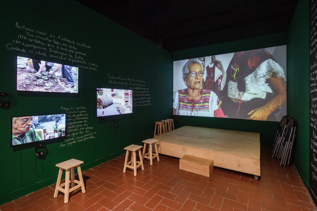 Salvador Xharicata en la 15 Bienal FEMSA: La voz de la montaña, 2024. Museo del Pueblo (IEC), Guanajuato. Cortesía de Bienal FEMSA. Fotografía: Ramiro Chaves.