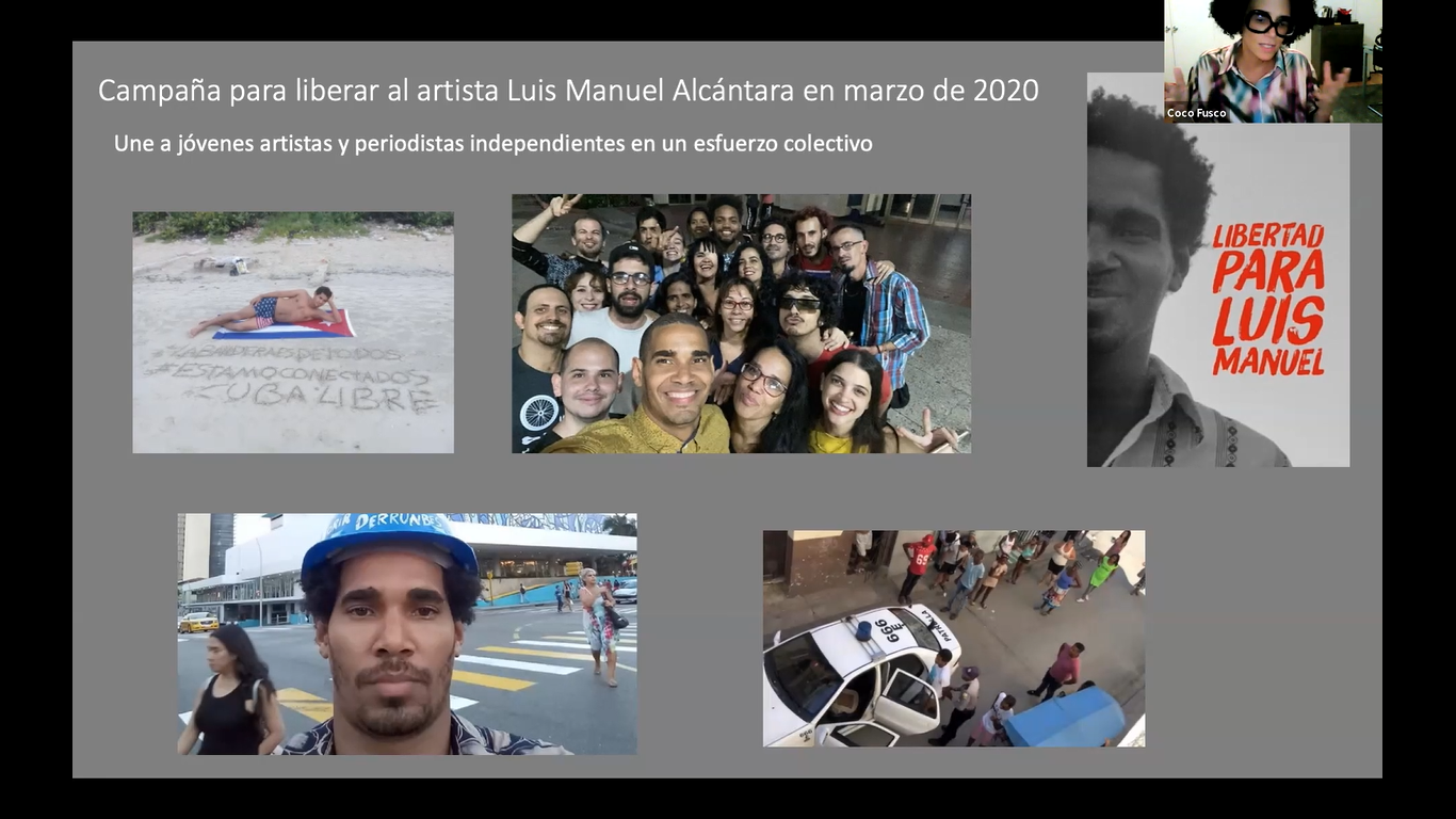 Captura de pantalla, Coco Fusco seminario. Imágenes de Abril Zales y Ana Cadena