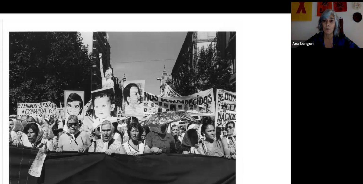 Captura de pantalla, Ana Longoni seminario. Imágenes de Abril Zales y Ana Cadena