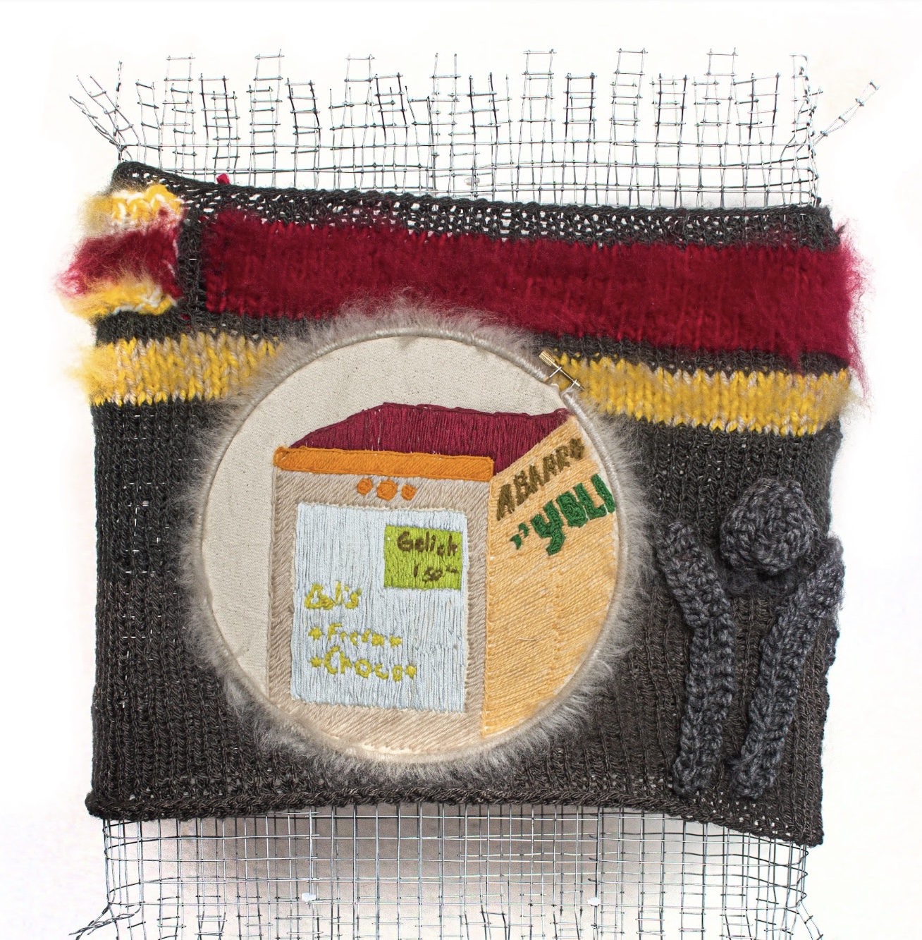 Tal es el caso de Guadalupe Alonso Vidal, artista visual de Ensenada que investiga la noción de progreso implicada en el trabajo y la construcción. Conjugando elementos estructurales como el cemento, la madera y la varilla con la tierra de Ensenada, sus esculturas toman forma en serpientes y escaleras que suben y bajan como o en ladrillos que inscriben las historias y deseos de quienes trabajan en la obra de construcción. Por otro lado, Roxana Alvarado, también artista ensenadense, aborda el tema de la vivienda de interés social desde la experiencia propia. Hilvanando el tejido de estambre con la malla electrosoldada, su obra recrea escenas del entorno habitacional de la colonia Urbi Villa del Roble donde ella misma creció y observó el entramado de afectos y fenómenos estructurales que construye un hogar de interés social.
